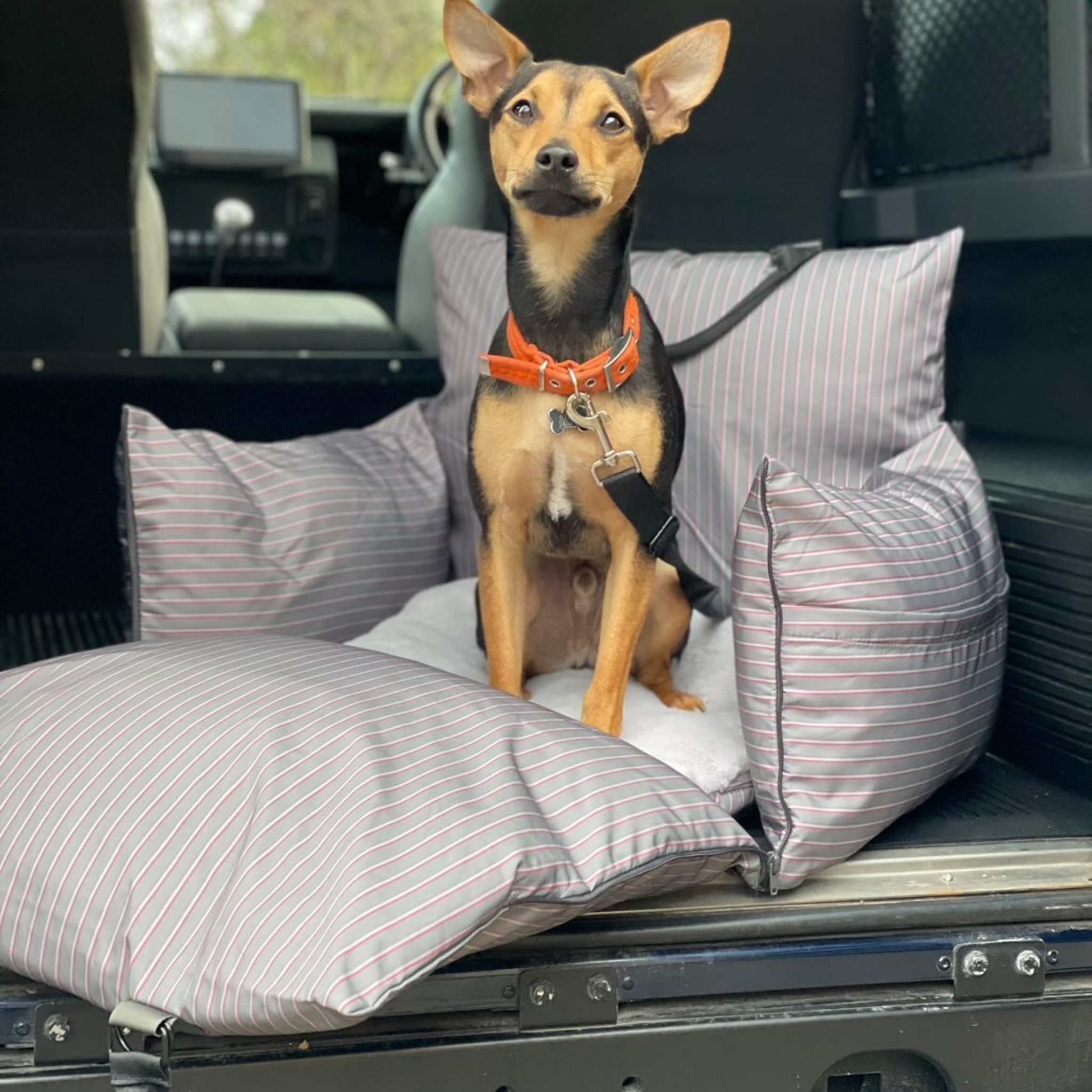 For example, a Staffordshire Bull Terrier or Female whippet or a Golden Doodle would all be great examples of pups who use our pods in the car.